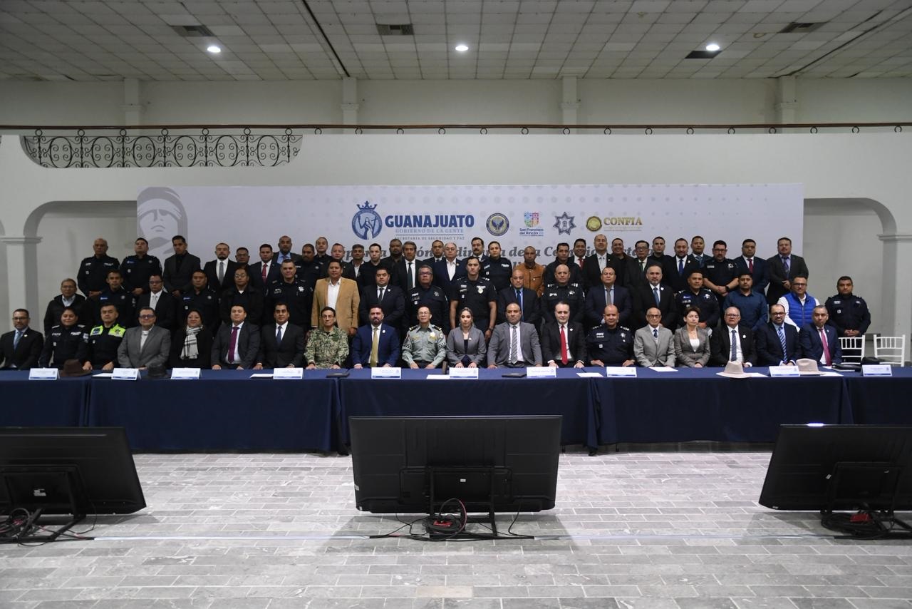 En la reunión también participaron los secretarios de los 46 municipios, así como el Coordinador Estatal de la Guardia Nacional en Guanajuato, el General de Brigada Juan Manríquez Moreno; el Comisario General de las Fuerzas de Seguridad Pública, Juan López Solorzano; el Presidente Municipal de San Francisco, Alejandro Marún González, y el Secretario de Seguridad de San Francisco del Rincón, Abel Márquez Martínez.
