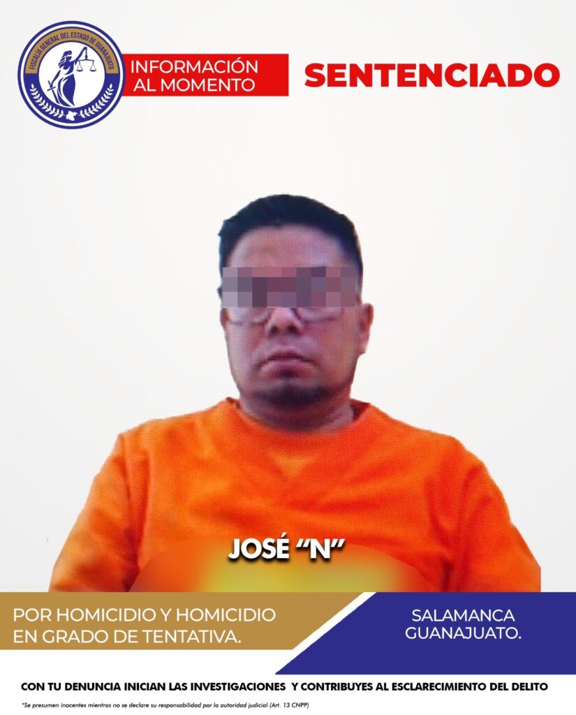 Salamanca, Gto.- La Fiscalía General del Estado de Guanajuato obtuvo una sentencia condenatoria de 42 años de prisión en contra de JOSÉ “N”, tras acreditar su responsabilidad en el delito de homicidio calificado y homicidio calificado en grado de tentativa.