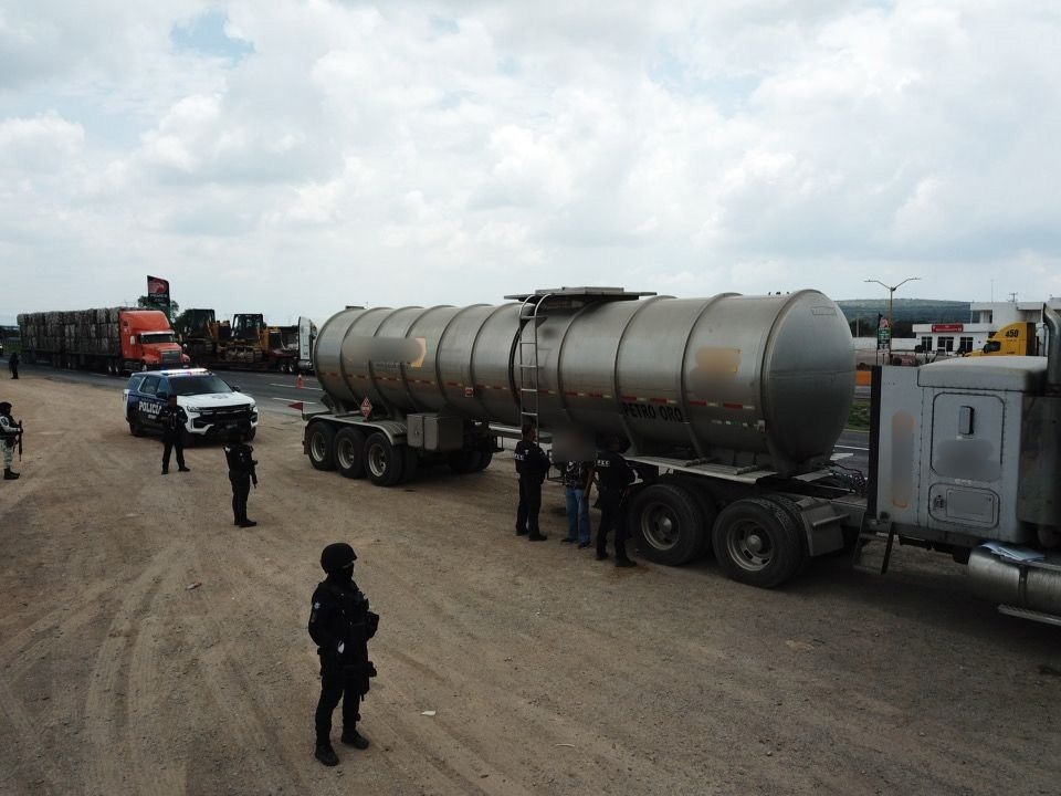 El aseguramiento tuvo lugar sobre la carretera federal 57, en el municipio de San Diego de la Unión, cuando personal de las Fuerzas de Seguridad Pública del Estado (FSPE) detectó un tractocamión marca Kenworth, acoplado a un remolque tipo tanque.