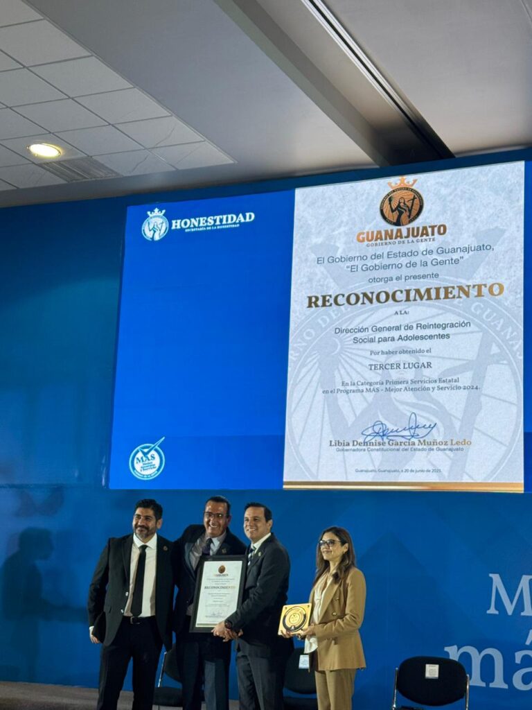 Guanajuato, Gto., a 21 de junio de 2025.- Brindar atención de calidad con trato digno, innovando y formando parte de una sociedad que no excluye, sino que acompaña. Ésa es la mística que llevó a la Dirección General de Reintegración Social para Adolescentes (DGRSA) a ser distinguida por el Gobierno de la Gente en el Programa MAS – Mejor Atención y Servicio 2024, como uno de los centros mejor evaluados a nivel estatal.