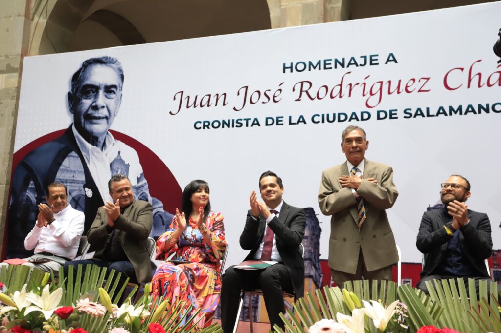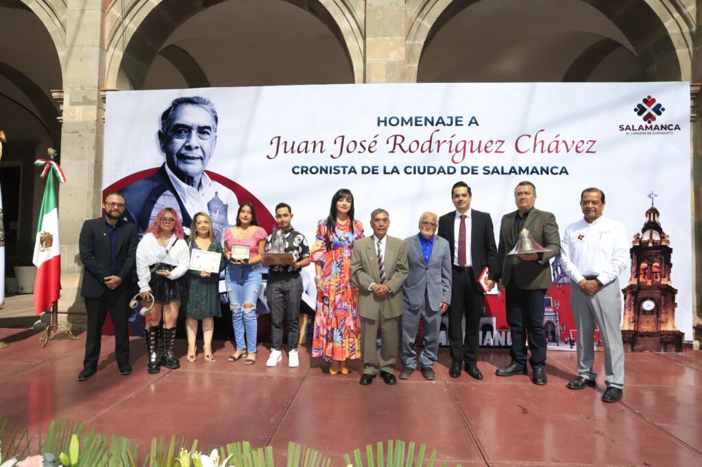 Salamanca, Guanajuato. El Gobierno Municipal de Salamanca celebró un emotivo evento en el patio central del exconvento de San Juan de Sahagún, para rendir homenaje a Juan José Rodríguez Chávez, quien se jubila tras treinta y tres años de trayectoria como cronista de la ciudad.