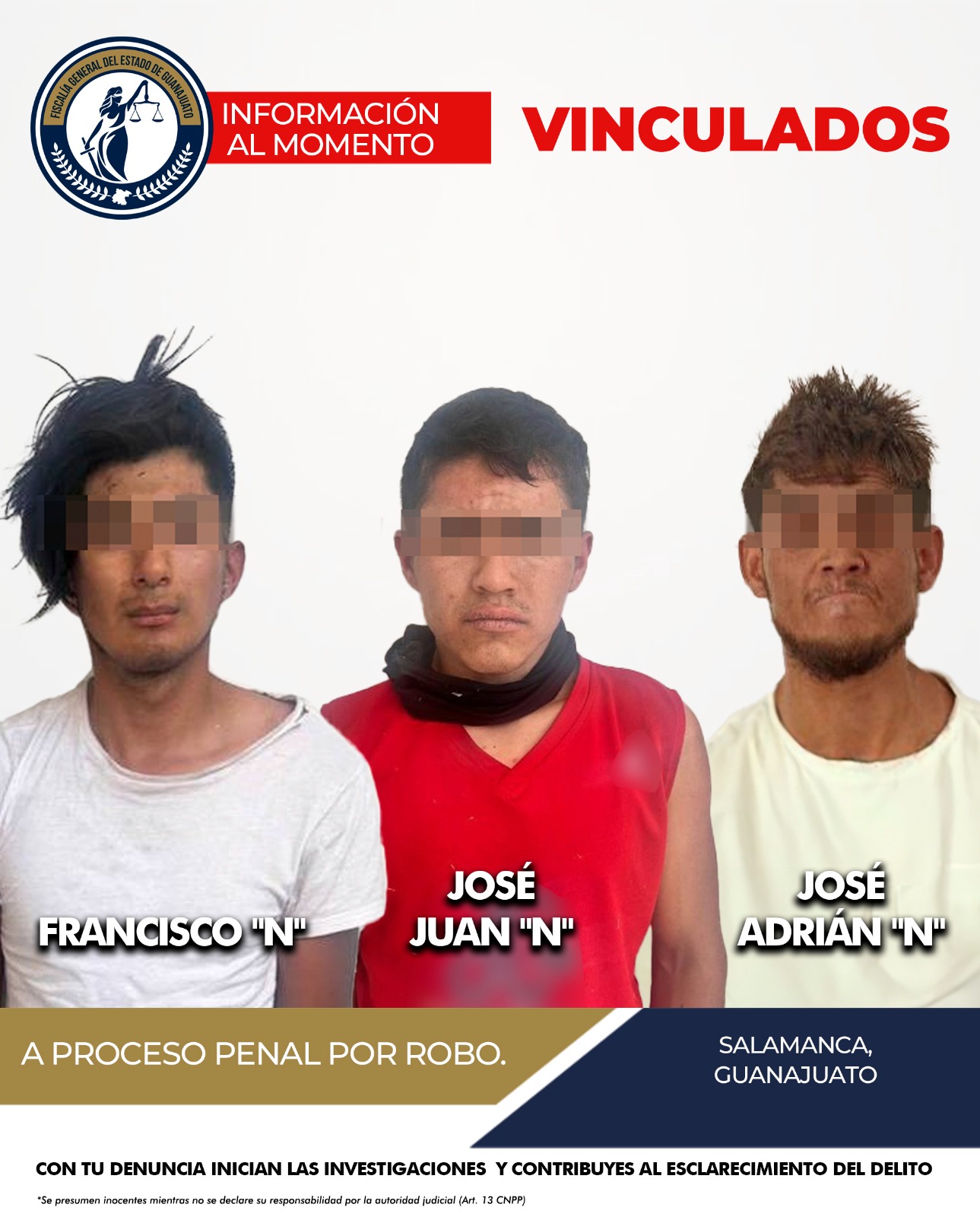 En su poder se encontró la motocicleta robada minutos antes. JOSÉ JUAN “N”, JOSÉ ADRIÁN “N” y FRANCISCO “N” fueron puestos a disposición de la Fiscalía General del Estado, donde se llevó a cabo la investigación correspondiente, para establecer su probable comisión en el robo.