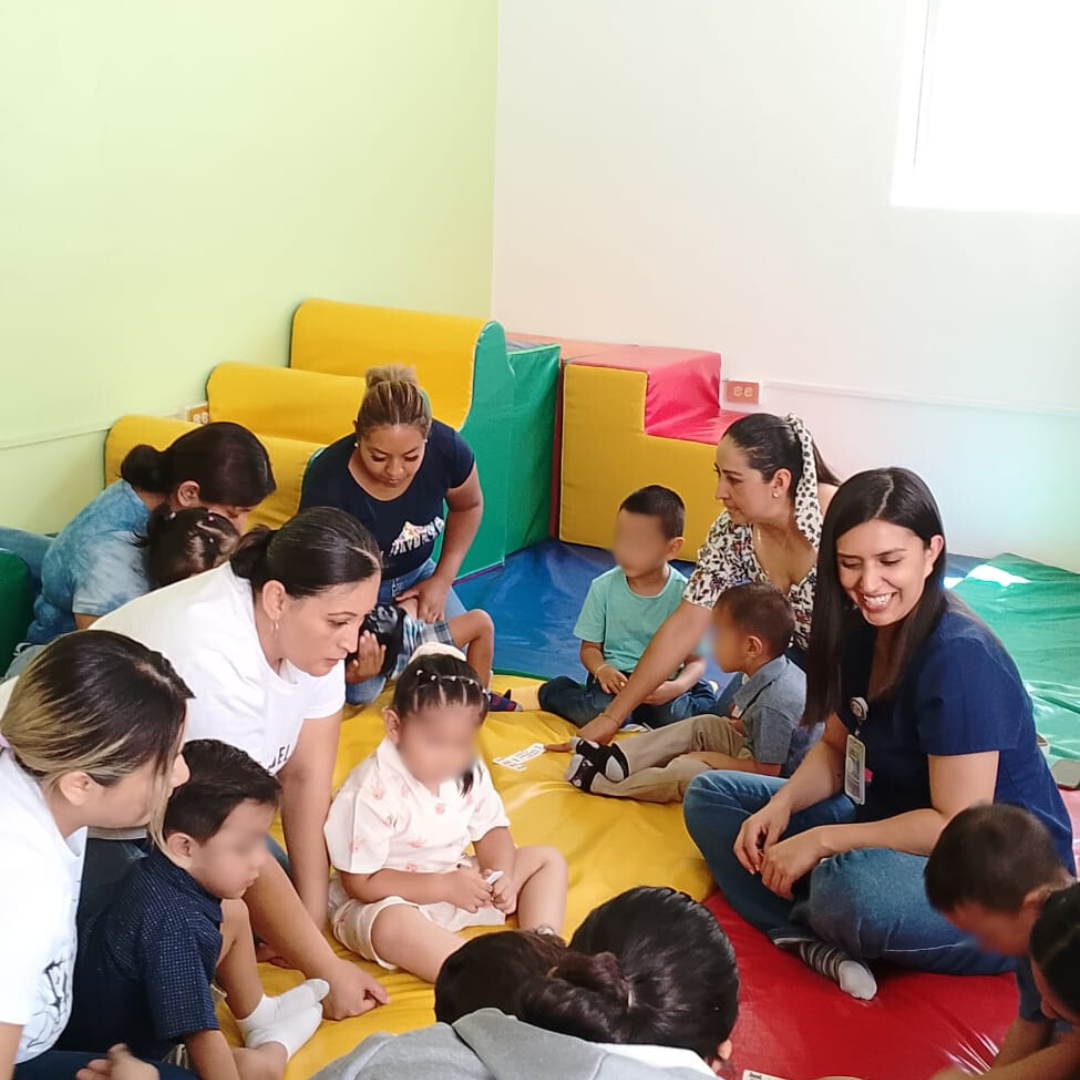 Para ello, el CAISES Valle de Santiago organizó una actividad con tres niñas y cinco niños que acuden a los servicios de estimulación temprana acompañados de sus madres y cuidadoras de familia, con quienes trabajaron el proceso para lograr habilidades cognitivas dirigidas a la atención y el rastreo visual de ciertos juguetes utilizados en las terapias.